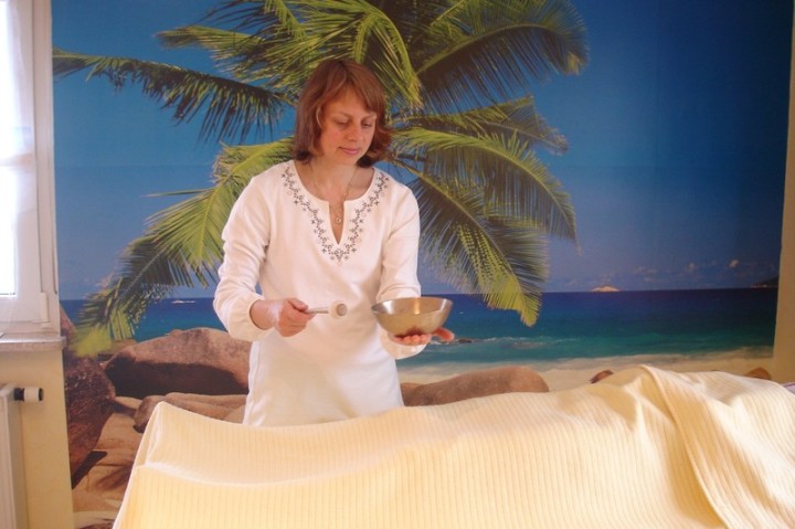 Dies ist eine kombinierte Klanganwendung. Der Basisteil wird mit der Stimme und sanfter Berührung ausgeführt, wodurch eine tiefe Entspannung entsteht.